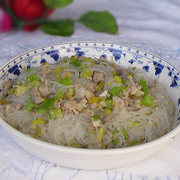 粉丝、猪瘦肉、胡萝卜、芹菜、油、盐、葱、姜、蒜、料酒。