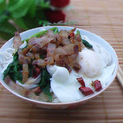 面条、腊肉、空心菜、油、盐、葱、姜、蒜、红辣椒。