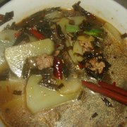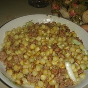 土豆、韭菜腌菜、肉末、葱花、盐、味精、辣椒、花椒。