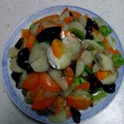 山药、胡萝卜、黑木耳、肉片、干红辣椒、洋葱丝、花椒粒、食盐、砂糖、香醋、猪油、鸡精。
