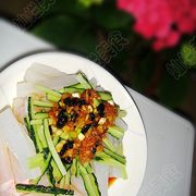 油条、黄瓜、白醋、鸡精、香油、盐。