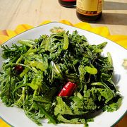 茼蒿、辣椒、白糖、李锦记蚝油、李锦记凉拌汁。