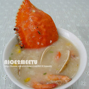 大米、玉米、梭子蟹、虾、贝类、水、葱花、姜片、料酒、胡椒粉、盐。