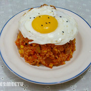 泡菜、米饭、洋葱、胡萝卜、玉米、鸡蛋、油、盐、韩国辣酱。