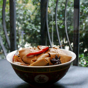 百叶、水、油、生抽、老抽、桂皮、茴香、五香粉、蒜、香叶、花椒、花椒粉、辣椒、辣椒粉。