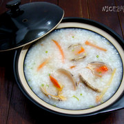 红心蛤蜊、胡萝卜、粥、姜、料酒、盐、葱。