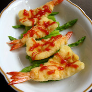 明虾、芦笋、鸡蛋、淀粉、面包粉、料酒、油。