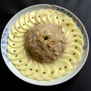 玉子豆腐、肉糜、鸭蛋、盐、白胡椒粉、料酒、葱花、花生。