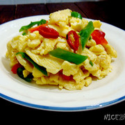 鸡蛋、青椒、红椒、水、油、盐、葱花。