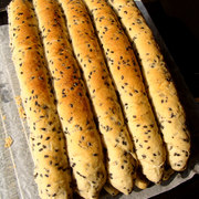 高筋粉、奶粉、豆渣、白砂糖、盐、草鸡蛋、酵母粉、黄油、炒香的黑芝麻。