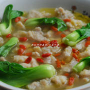 鸡腿肉、鸡蛋、上海青、枸杞、葱姜、牛奶、生粉、盐、胡椒粉。