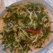 绿豆芽、韭菜、油、辣椒、醋、盐、味精。