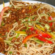 猪肉末、涪陵榨菜、蔬菜、甜面酱或黄豆酱、酱油、葱花、姜末、料酒、花生粒、熟芝麻、面条。
