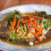 福寿鱼、葱、芫荽、辣椒、姜片、姜丝。