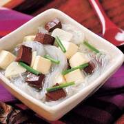 鸭血、嫩豆腐、粉丝、鸡肉浓汤宝、蒜、盐、胡椒粉、香葱。