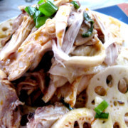 鸡腿、莲藕、葱花、辣椒油、姜、大蒜、盐、料酒。
