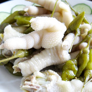 鸡爪、泡椒、葱姜蒜、八角、桂皮、料酒、盐。