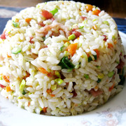 米饭、培根、胡萝卜、豆苗、黄瓜、葱末、盐、黑胡椒、油。