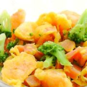 西兰花、火腿、鸡蛋、虾仁、生粉。