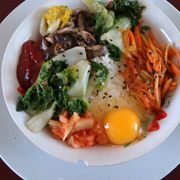 米饭、宗家府泡菜、清净园辣酱、白菜、香菇、胡萝卜。