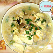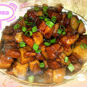 豆腐、五花肉、油、蒜片、姜丝、生抽、葱花、盐、泡椒、味精。