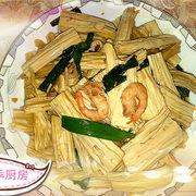 北极虾仁、腐竹、蒜片、葱段、油、蚝油、生抽、盐、味精。