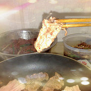 牛肉、葱段、姜片、腌肉酱、腌肉聊、生抽、白糖、孜然、黑胡椒粉、白酒、油、味精、芝麻酱、香油、盐、涮锅料、生抽、白醋、白糖、香菜末、葱末、芝麻、辣椒油、味精。