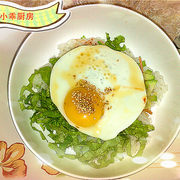 米饭、生菜、鸡蛋、西葫芦、香油、芝麻、韩国辣酱。