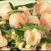 鲜虾仁、豆嘴、韭菜、姜丝、淀粉、鸡蛋。