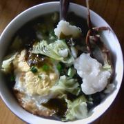 面粉、高丽菜、鸡蛋、葱、盐、海藻。