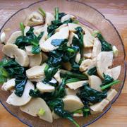水面筋菠菜、葱丝、姜丝、盐、砂糖、鸡精、花椒、香油。