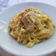 意大利宽面条、金枪鱼罐头、洋葱、蒜头。