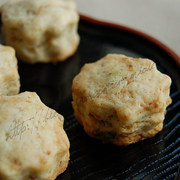 糖粉、无盐黄油、香草精、牛奶、蛋黄、低筋面粉、泡打粉、香葱粉。