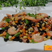 黄豆、黑云豆、鲜虾、火腿、胡萝卜、蘑菇、青椒。