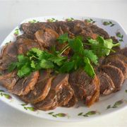 牛腱子、花椒、大料、香叶、桂皮、山楂球、盐、酱油、料酒、老抽、干辣椒、葱、姜、糖。