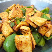 北豆腐、青菜椒、李锦记照烧汁、橄榄油、盐。