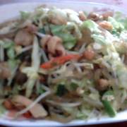 鱿鱼、猪肉、椰菜、鲜虾、鸡蛋、银芽、蒜头、花生豆、辣椒、葱子、盐、蚝油、酱油、味精。