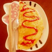 鸡蛋、百梦多咖喱、蔬菜粒、番茄酱、米饭。