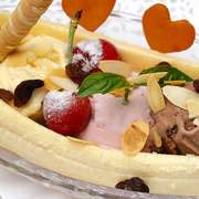 香草味的冰淇淋、奥利奥饼干的碎片、奶油。