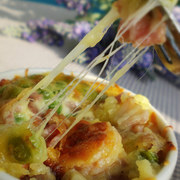 培根鲜虾焗薯泥