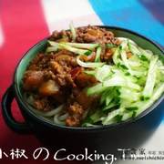 土豆、肉馅、面条、老抽、酱、葱、蒜、油、剁椒、料酒、盐、黄瓜。