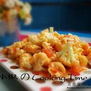 花菜、西红柿、蒜瓣、淀粉、番茄酱、食用油、盐、鸡蛋。