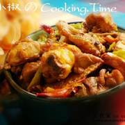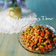 去骨鸡腿、熟玉米粒、食用油、胡萝卜、黄瓜、姜、白胡椒粉、料酒、花椒、孜然、甜辣酱、黄豆酱、番茄酱、剁椒、盐。