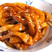 猪肋排、姜、大蒜、辣椒酱、麦芽糖浆、白糖、酱油、麻油、黑胡椒。