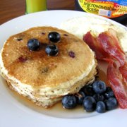 中筋面粉、泡打粉、小苏打粉、脱脂酸牛奶、牛奶、鸡蛋、黄油。