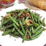 四季豆、肉末、姜粒、蒜片、芽菜、酱油、老抽、料酒。