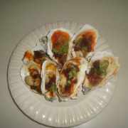 鲜蚝、芹菜末、菜脯粒、蒜香烧烤酱。
