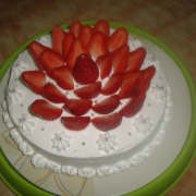 戚风蛋糕、淡奶油、葡萄干、草莓、银珠糖。