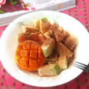 新鲜水果、丘比香甜味沙拉酱、话梅粉。