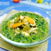 西洋菜、皮蛋、瘦肉、胡萝卜、草菇、蒜、油、盐、料酒、胡椒粉、生粉。